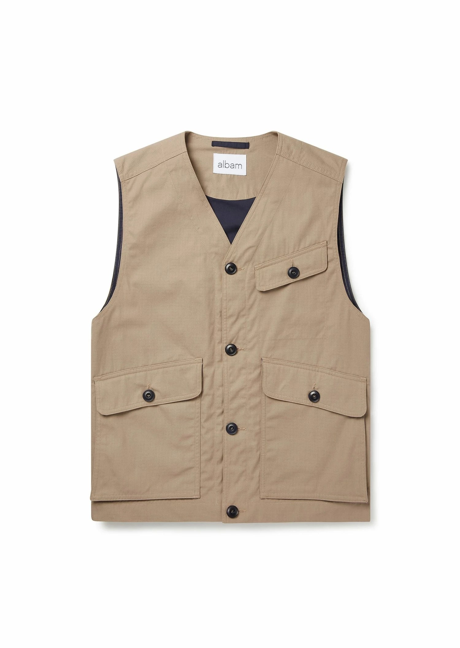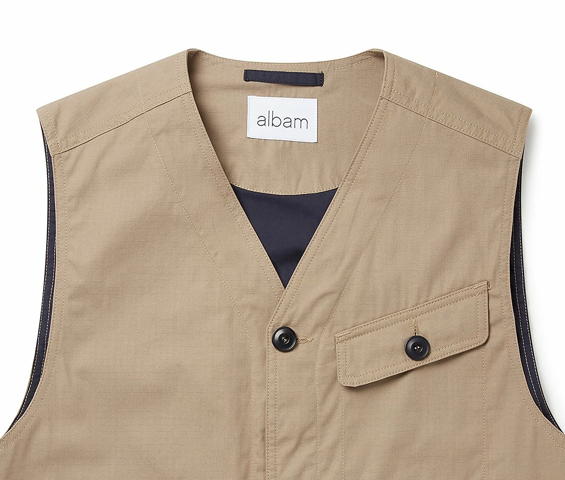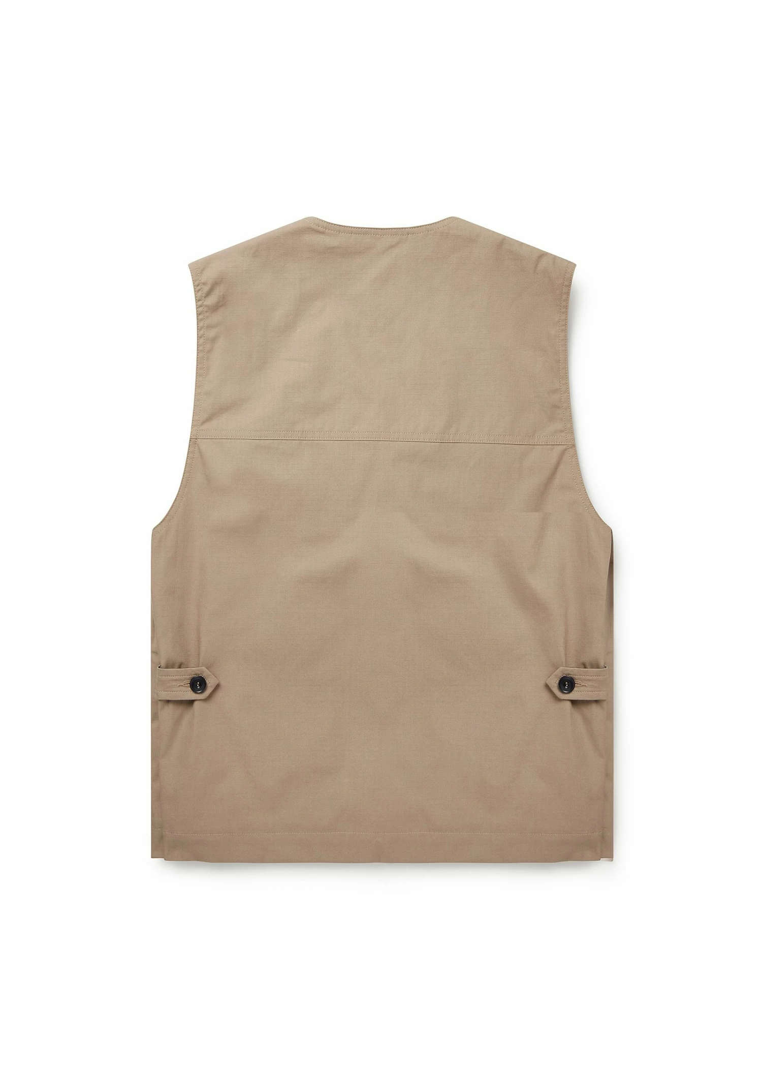 Based on a classic military gilet, crafted from an Italian 100% cotton rip stop. As the weather warms up, the quantity of pockets in an outfit usually drops – luckily, the Flight vest features three pockets and is suitable for all year wear. Button adjusters on the back allow for a bit more room when layered.