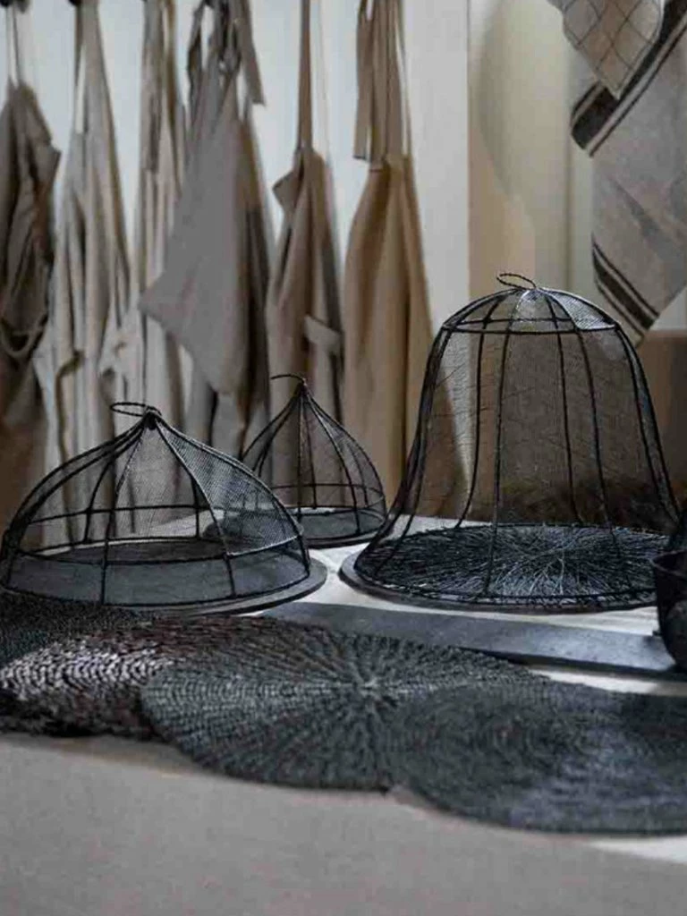 This elegant bell cloche from Fiorira Un Giardino is made from abaca net and comes with a food-safe tray in resin and glass fibre. Perfect for daily use, it will keep your feasts safe from flying friends and add something extra special to your table setting. Abaca, also known as Manila hemp, is a vegetable textile fibre and is 100% natural. The resin base is resistant to thermic shocks and suitable for food. The ideal choice for garden parties picnics and weddings. Cloche: woven hemp, wire Base: Resin, glass fibre Wipe with a damp cloth The food cover should be air dried D:40 x H:30 cm