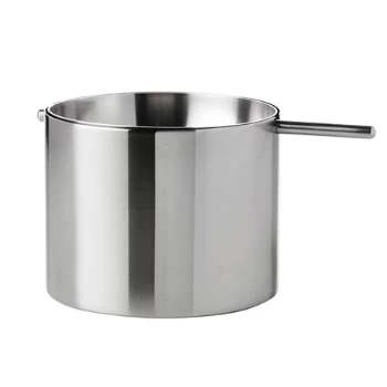 The familiar, classic revolving ashtray by Arne Jacobsen. A practical ashtray with a revolving lid that covers cigarette butts and eliminates odour. The cylindrical design makes this ashtray a design object in its own right. The ashtray is available in two sizes.